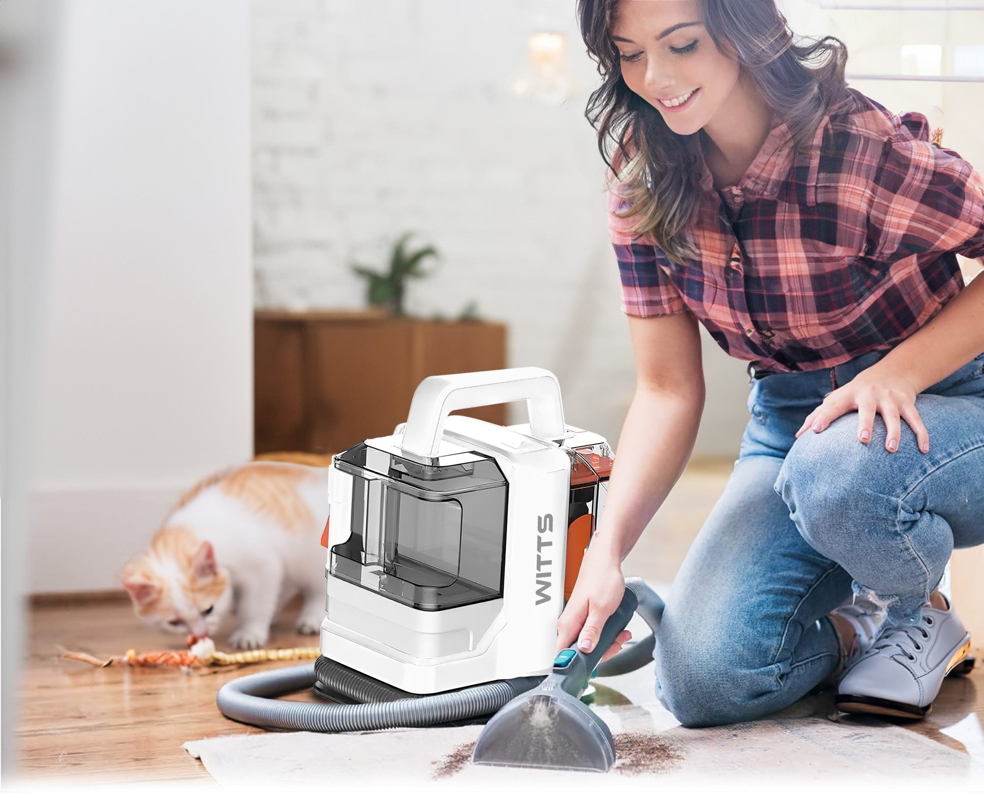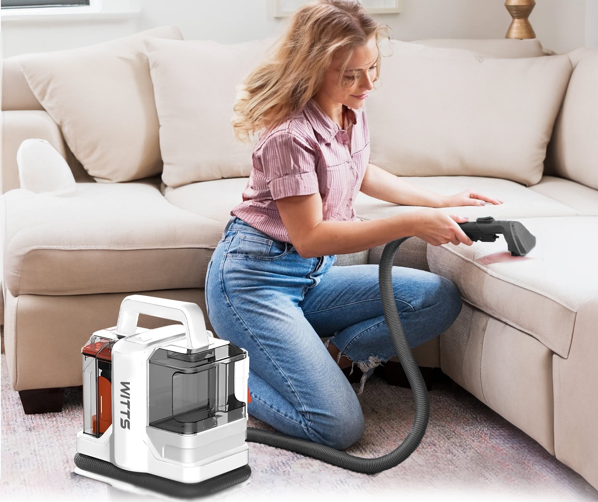 Met de WITTS Tapijtreiniger is het schoonmaken van je bank eenvoudiger dan ooit! Deze krachtige en draagbare vlekkenreiniger is ontworpen om hardnekkige vlekken en vuil moeiteloos te verwijderen, waardoor je bank er weer als nieuw uitziet. Het compacte ontwerp maakt het makkelijk om de reiniger op verschillende oppervlakken en moeilijk bereikbare plekken te gebruiken, zodat elke hoek van je bank grondig gereinigd wordt.